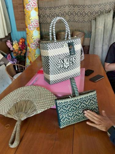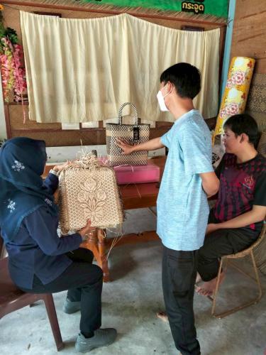 สำหรับการลงพื้นที่ในครั้งนี้ พัฒนาการจังหวัดนราธิวาส ได้ติดตามการนำลายผ้าพระราชทาน ได้แก่ "ผ้าลายขอสมเด็จ-เจ้าฟ้า"และ"ผ้าลายบุปผาบรมราชินีนาถ" มาประยุกต์ใช้ในการสร้างสรรค์ลวดลายลงบนผลิตภัณฑ์เสื่อกระจูดและงานจักสานของทางกลุ่ม ซึ่งถือเป็นการนำร่องและต่อยอดภูมิปัญญาท้องถิ่นให้มีความร่วมสมัย เพิ่มมูลค่าให้กับชิ้นงานหัตถกรรม และยังเป็นการสืบสานพระปณิธานในการอนุรักษ์ศิลปหัตถกรรมพื้นถิ่นของไทย