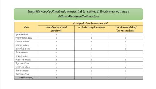 ข้อมูลสถิติการขอรับบริการผ่านช่องทางออนไลน์ (E–SERVICE) ปีงบประมาณ พ.ศ. 2568