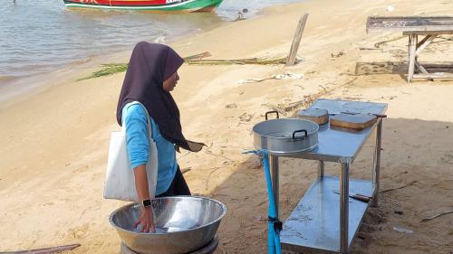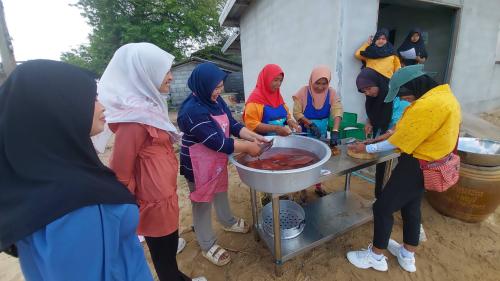 นายมะสาฮารี ยะโกะ นักวิชาการพัฒนาชุมชนชำนาญการ สำนักงานพัฒนาชุมชนจังหวัดนราธิวาส และ นายภาคิน อาลีมิง นักวิชาการพัฒนาชุมชนชำนาญการ สำนักงานพัฒนาชุมชนอำเภอตากใบ ลงพื้นที่ติดตาม สนับสนุนการดำเนินงานกลุ่มอาชีพของสารสนเทศตำบลต้นแบบตำบลศาลาใหม่ กิจกรรมการแปรรูปน้ำพริกปลากระบอก (แห้ง) และกิจกรรมการแปรรูปปลากระบอกแดดเดียว ซึ่งมีคณะกรรมการและสมาชิกสารสนเทศตำบลต้นแบบตำบลศาลาใหม่ร่วมดำเนินกิจกรรม